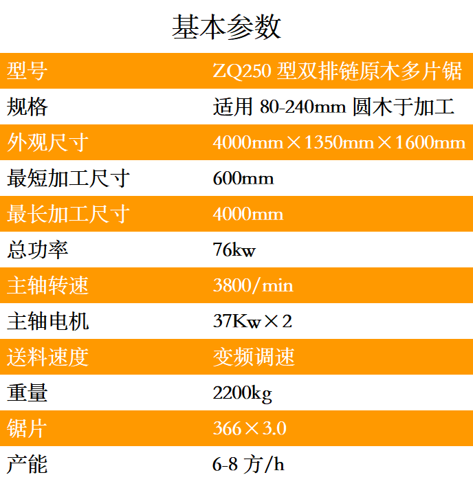 ZQ250型雙排鏈原木多片鋸是一種用于原木的開破以及分片的高性能專用機械