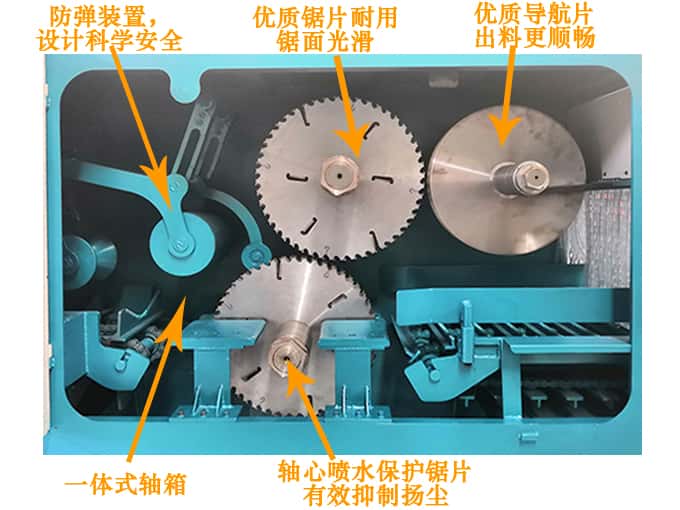 降溫系統:采用軸芯噴水技術,防塵環保,保護鋸片,能確保鋸片持續工作,延長鋸片壽命。