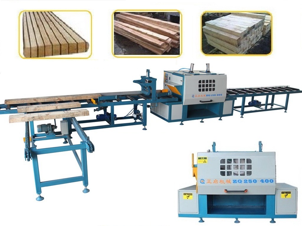 ZQ250全自動方木多片鋸具有自動感應調節進料高低尺寸,全自動化輔助送料工作臺,工作臺具有自動靠邊、對中、進料等先進功能,可大幅度減少操作人員的數量,亦可大大減少操作工的勞動強度。上軸采用氣缸自動感應壓料裝置,可實現大小方料隨意放,無需調高低,送料平穩速度高,操作和維護保養簡單。上下軸的設計,具有鋸片直徑小,鋸路小省料的優點,鋸面光滑平整可以代替刨,適用于大方料、長木料的開方開片、實木規格板、建筑模方、實木地板、實木家具等木材加工企業。在國內東北地區、內蒙古滿洲里,國外俄羅斯、非洲安哥拉、津巴布韋、剛果、南美巴拿馬、中美哥斯達黎加等地區廣泛使用。