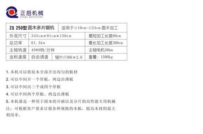 1. 原木多片鋸適用于加工個種軟硬圓木材。例:(杉木、松木、楊木、桉木、青岡木、雜木、等)