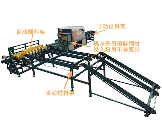 送 料:采用四排尖齒鏈條輸送,機上配有變頻智能調速器,可以對大小木料的進料速度實行自由調速。原木可以實現自動分中,機上還配有限位開關,防止超去規格木料進入,防止卡木避免對機器造成損壞。