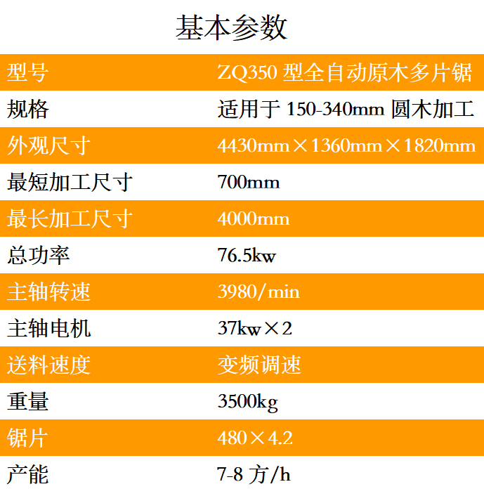 ZQ350型全自動原木多片鋸是針對原木鋸切而設計的專用機床,其主要特點與性能:帶自動進料架、自動出料架、自動翻料架,可自動進料、自動對中、自動出料、自動翻料,極大提高效率降低人力成本。采用五軸結構設計-前鋸后導航確保木板的精確度,無論木板長短均可保證鋸切木材尺寸公差在0.2mm-0.5mm之內,尺寸標準偏差小,節約木料,上下鋸軸,鋸片采用進口帶刮刀鋸片,鋸切表面光滑,無需再刨,保證不燒鋸片。采用自動分中裝置,提高木材的利用率;上壓輥主動增加壓力,送料平穩;軸心噴水冷卻鋸片,去脂降溫,增強鋸片的使用壽命。一次多片,大大提高工效;