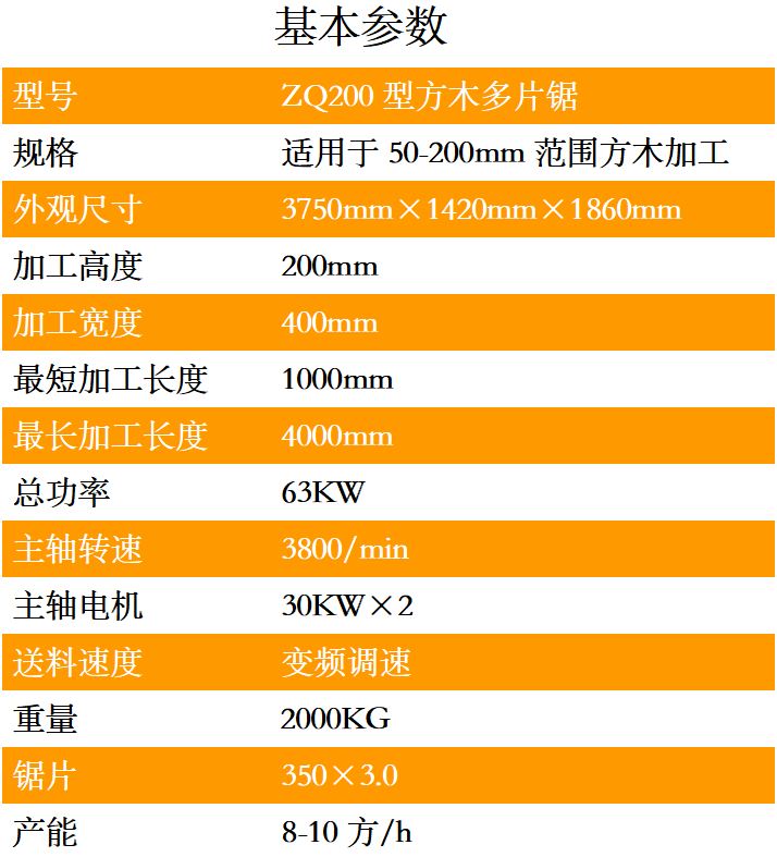 1.ZQ200型方木多片鋸采用獨立5條滾軸傳動設計,可以保證同一個平面線上,送料平穩。