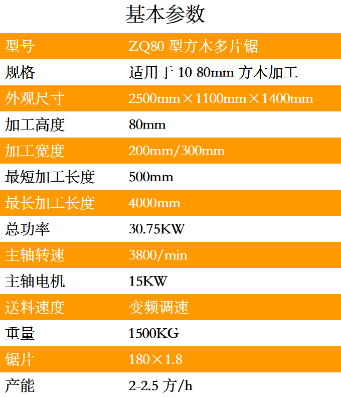1.ZQ80型方木多片鋸采用獨立5條滾軸傳動設計,可以保證同一個平面線上,送料平穩(wěn)。